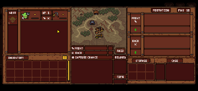 Goblin Nest is a simple resource management game. Build your nest and increase your population by raiding villages and bringing defeated enemies back to your base.