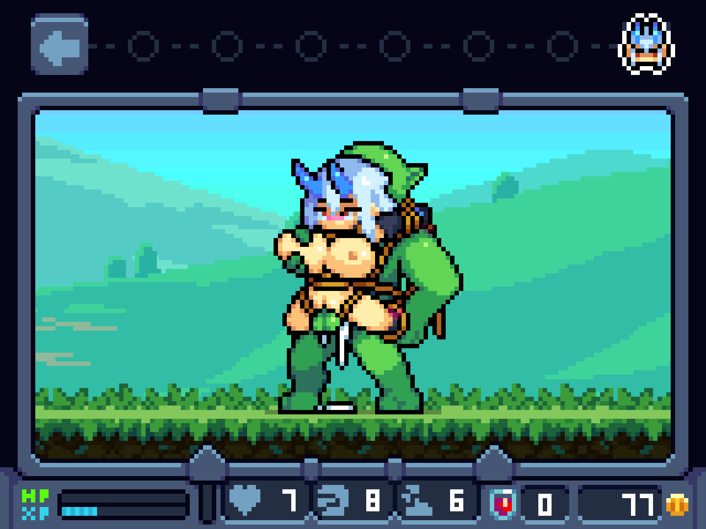 Control a cute and hot 'Oni' in a simple Tamagotchi - style game. Train to become stronger to defeat monsters. Mix and match charms with special effects obtained by losing and being bred by monsters.